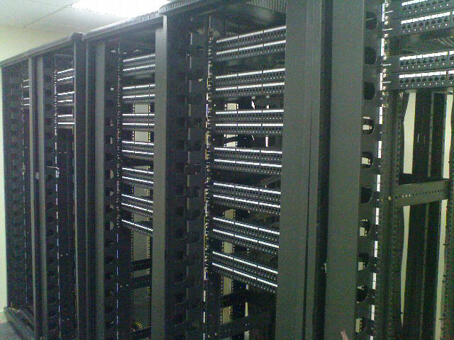 项目位于北京东路浦发银行大厦4楼,由漕河泾开发区客服中心搬迁而来。单层面积大,信息点集中。共计完成1991个六类信息点,楼层机房布置5台设备机柜。UPS机房、布线机房及多媒体机房各自独立。另一个共同点是:该项目实施进度要求高,从进场施工到最终验收只有4周时间。多工种同步施工,给项目的安装及管理带来了很大的难度。现场实施过程中发现,很多地面的架空高度不足5厘米,地板下线槽的安装高度无法满足……